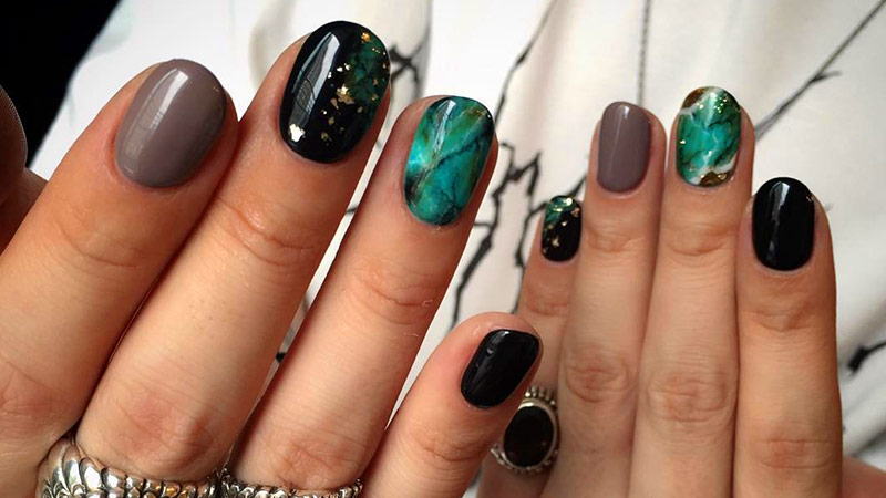 Праздничным вариантом является мраморный, зеркальный маникюр и кошачий глаз.